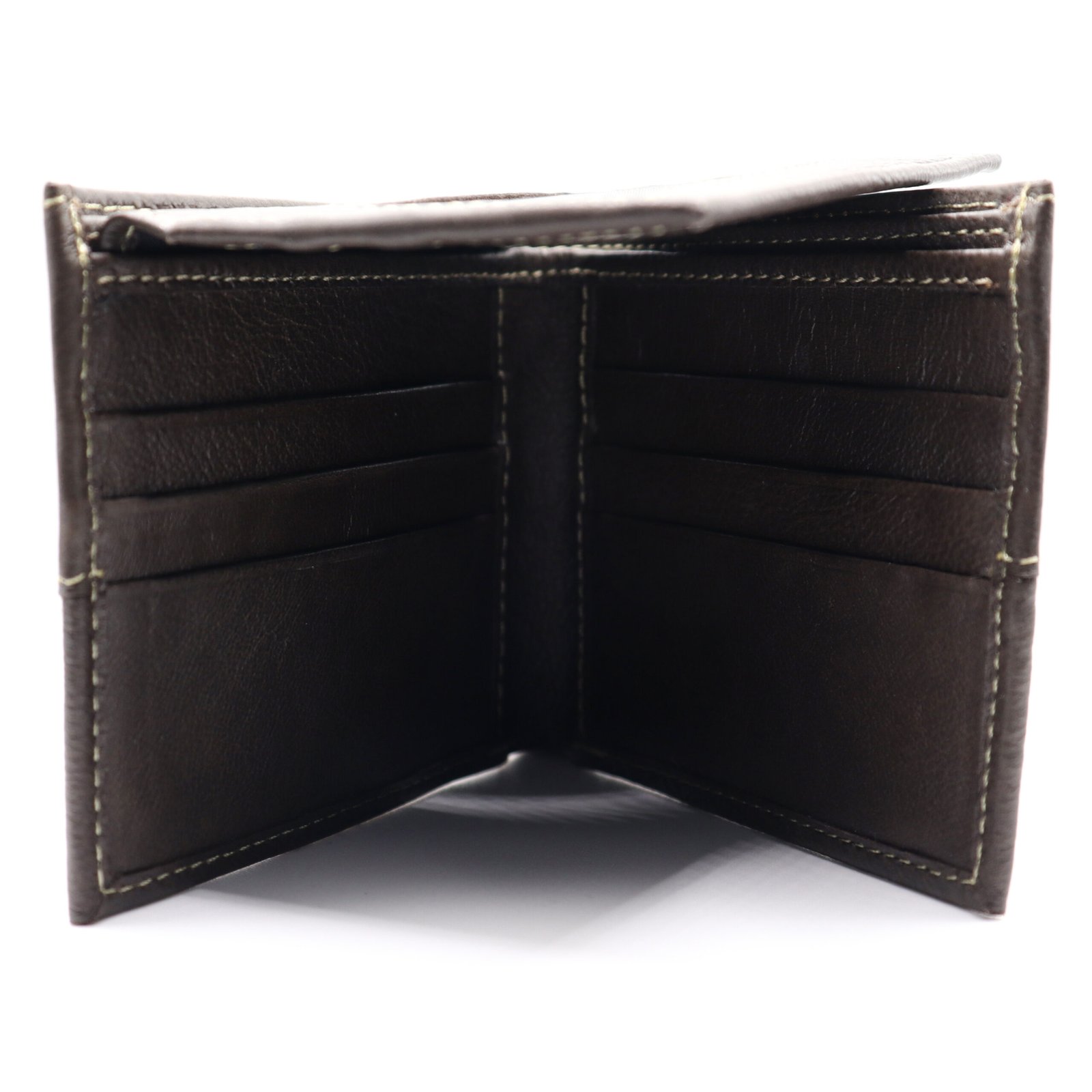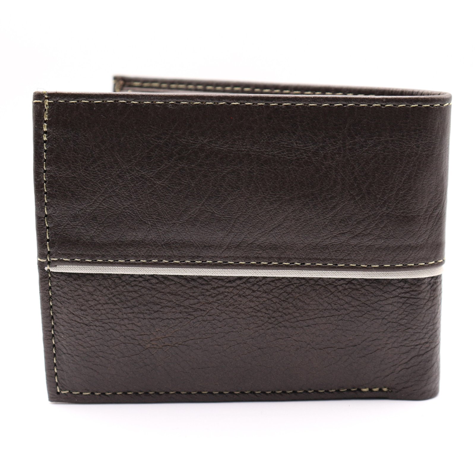 Billetera de piel café con blanco