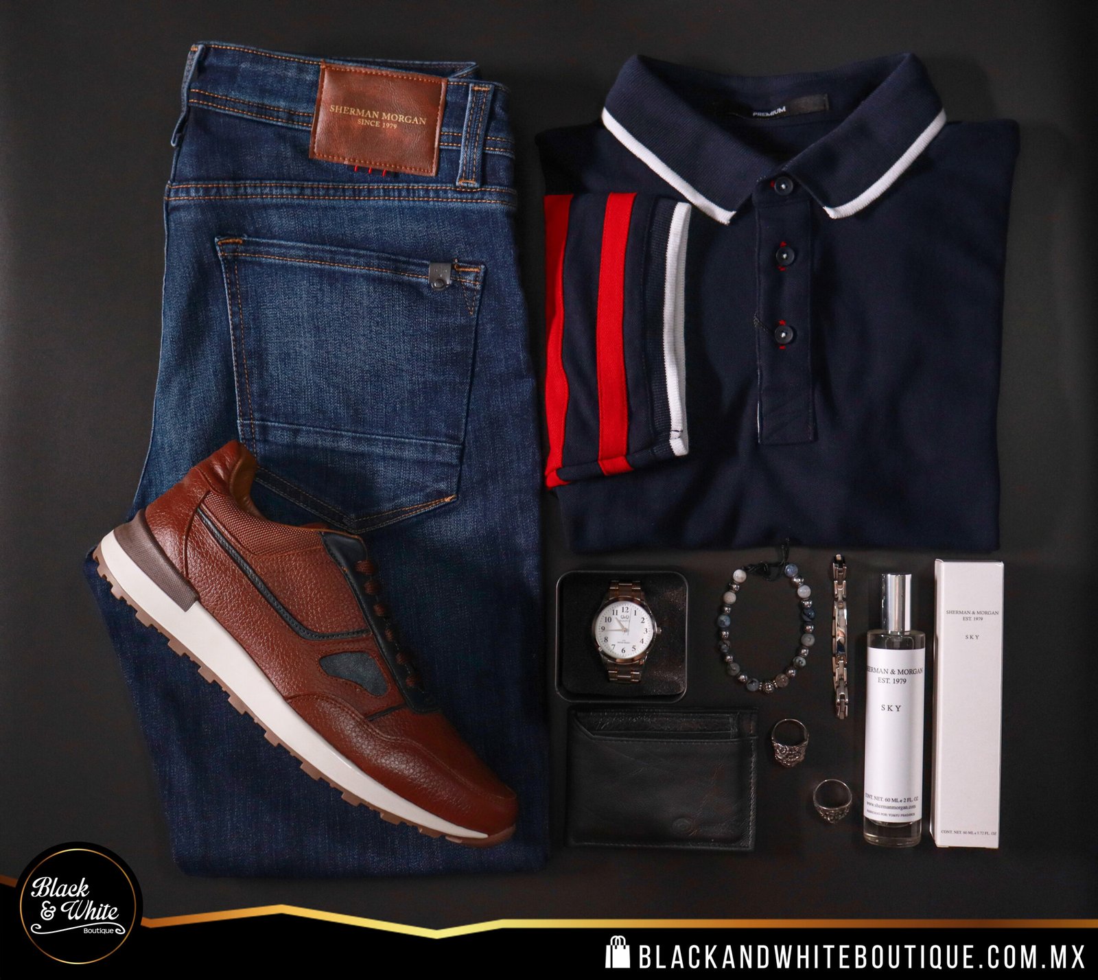 Polo, color azul marino con blanco y rojo